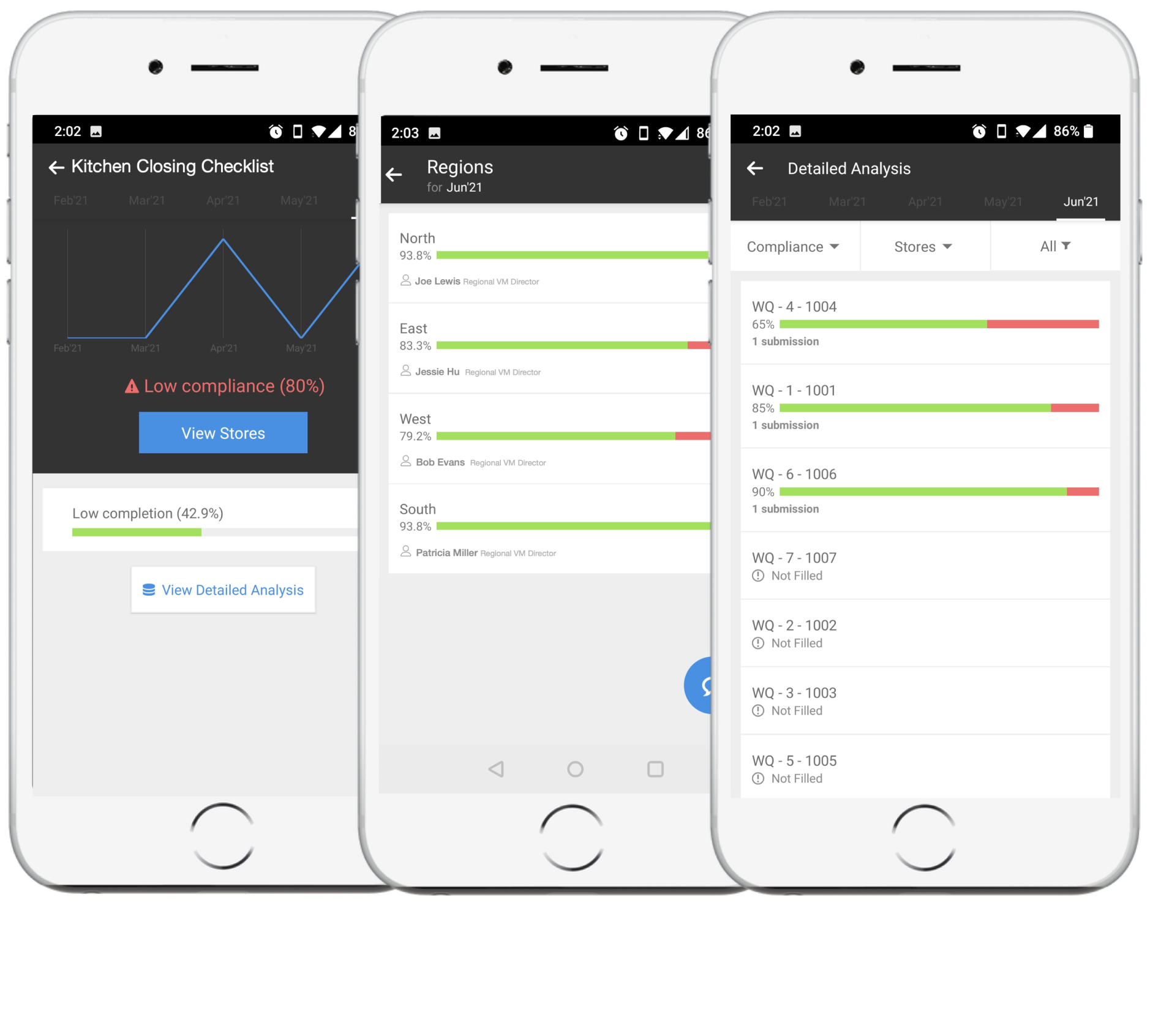 With the entire checklist available from a Mobile device (phone or tablet with option to do from a PC or laptop through browser), your store team can finally focus on the store walkthrough and the actual checks with observations/ confirmations getting recorded while on the move. No more sitting in the back office creating and sending reports. That said, they do have an option to access it from a PC/ Laptop through browser also, if that may be easier for them.